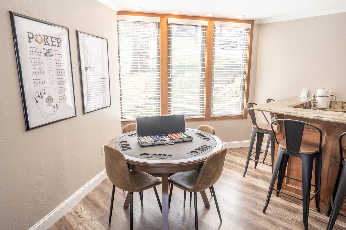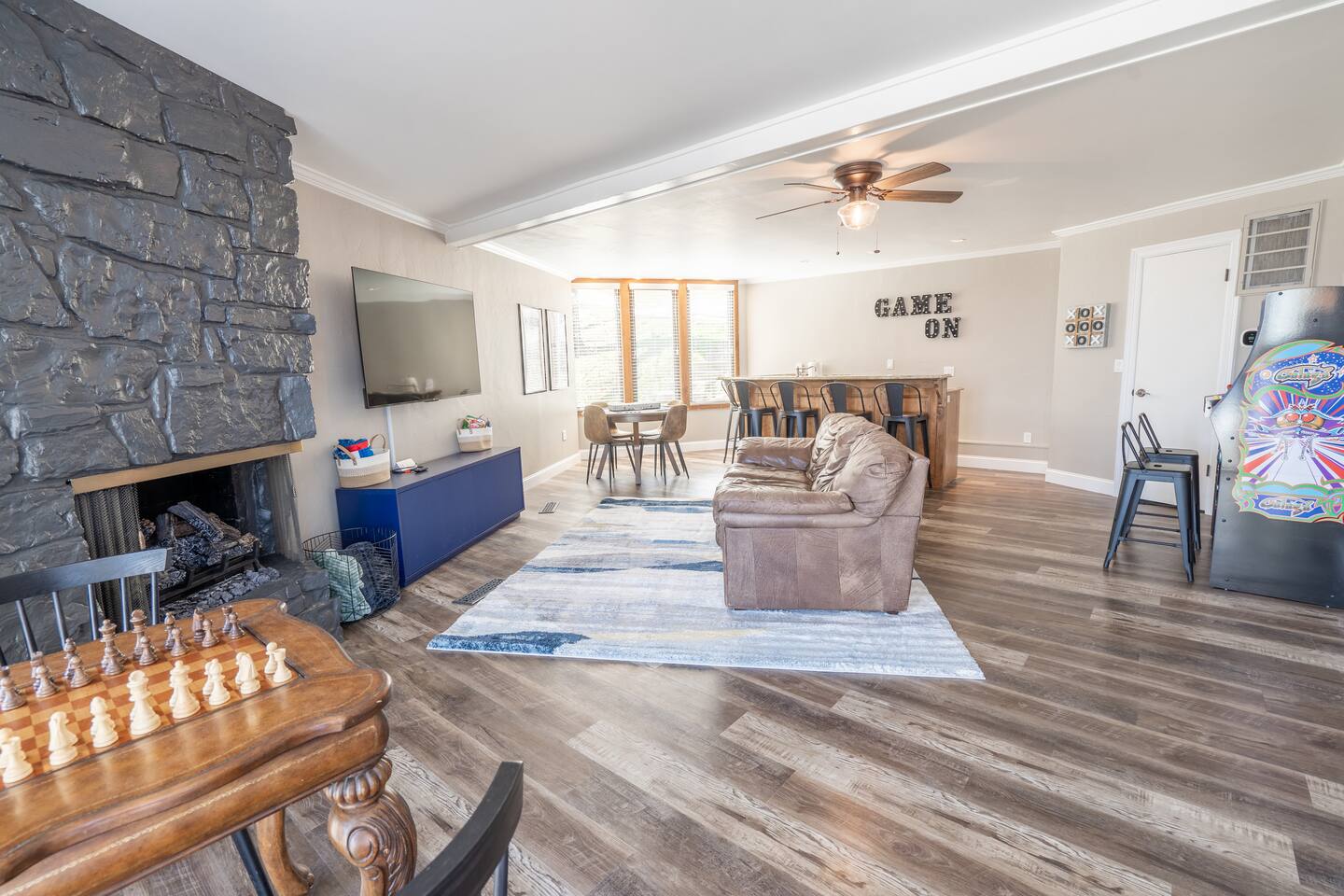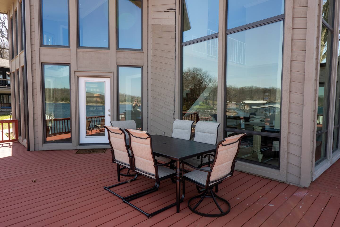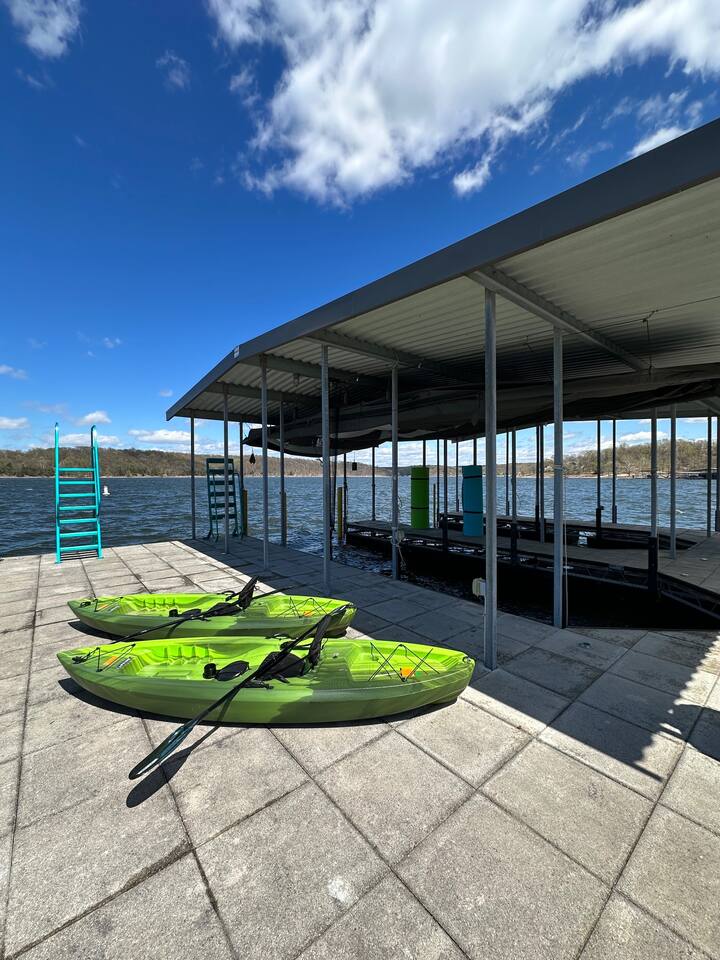 Overall Home Information: - Large home perfect for large families or multiple families - Sleeps 18+ - Over 4300 SqFt with 6 Bedrooms and 4 full bathrooms, fully stocked for large families - Gameroom has wet bar with mini-fridge, arcade games, poker table, large RokuTV for video games and movies - Panoramic lake view with boating and playing in Drowning Creek cove - Private dock with jump platform and ladder - 2 boat slips - All bedrooms, Gameroom, and living room have Roku TVs - Large 2 car garage available - Fully stocked laundry room - Keycode entry - Pet friendly - Up to 2 dogs, Pet fee of $100 at booking Interior Rooms: - Massive kitchen with large bar and dining area with coffee bar - overlooking main lake. Filtered water at kitchen sink - Office has main lake view – IF you must work! - Laundry room with washer and dryer - Living room with main lake view that seats 8 - Large master suite upstairs with lake view has a king and sofa bed, with a large dressing room with two sinks and private bathroom with full amenities. - Downstairs bedroom #1 with queen bed - Downstairs Bunk room has 2 twin/twin bunks - Gameroom with sleeper sofa - Upstairs bedroom #4 has a queen bed with main lake views - Upstairs bedroom #5 has a queen bed and desk. - Large upstairs bedroom #6 has queen bed and desk.
