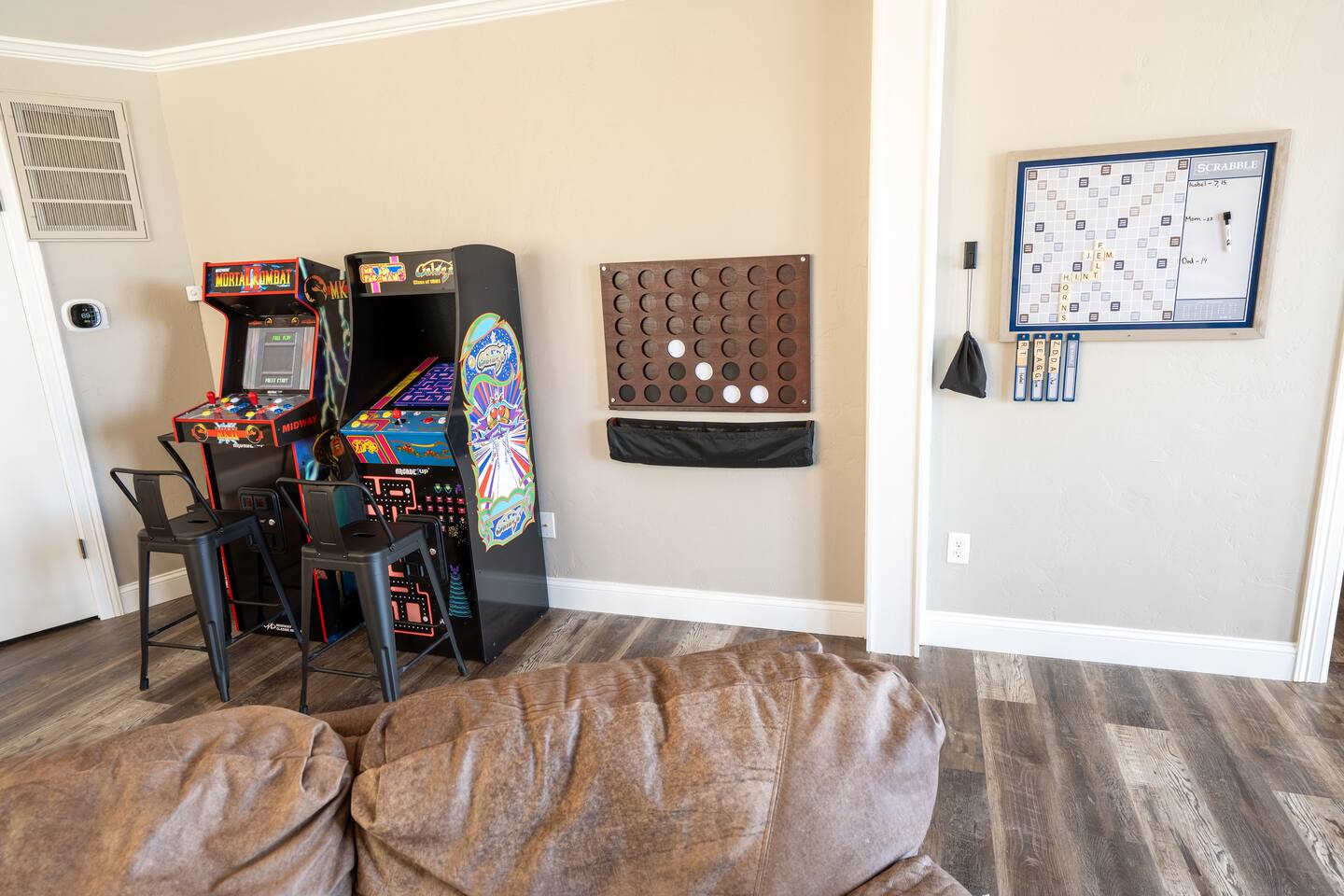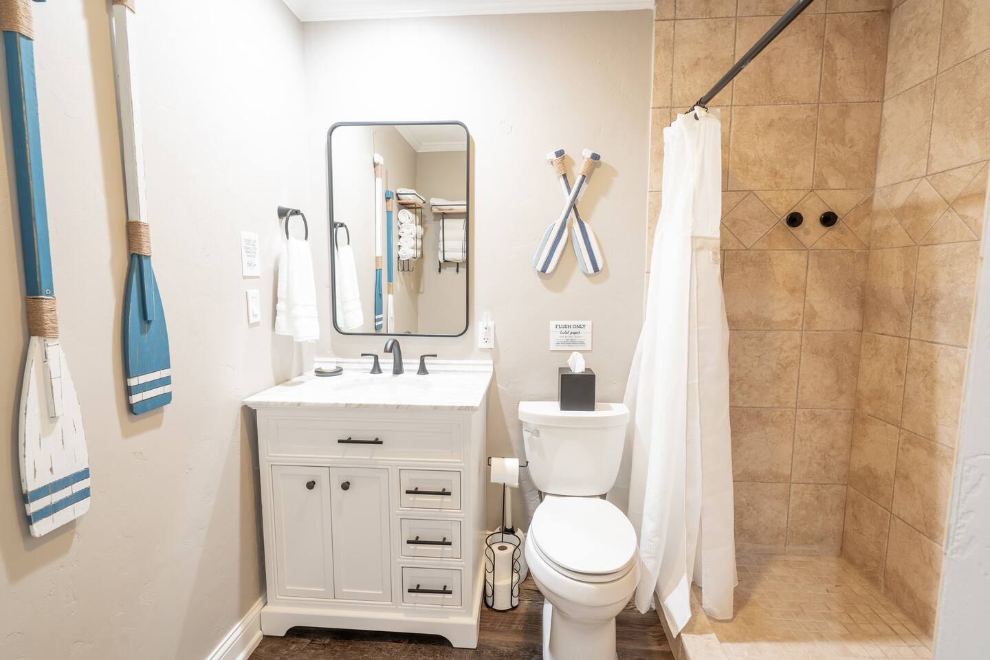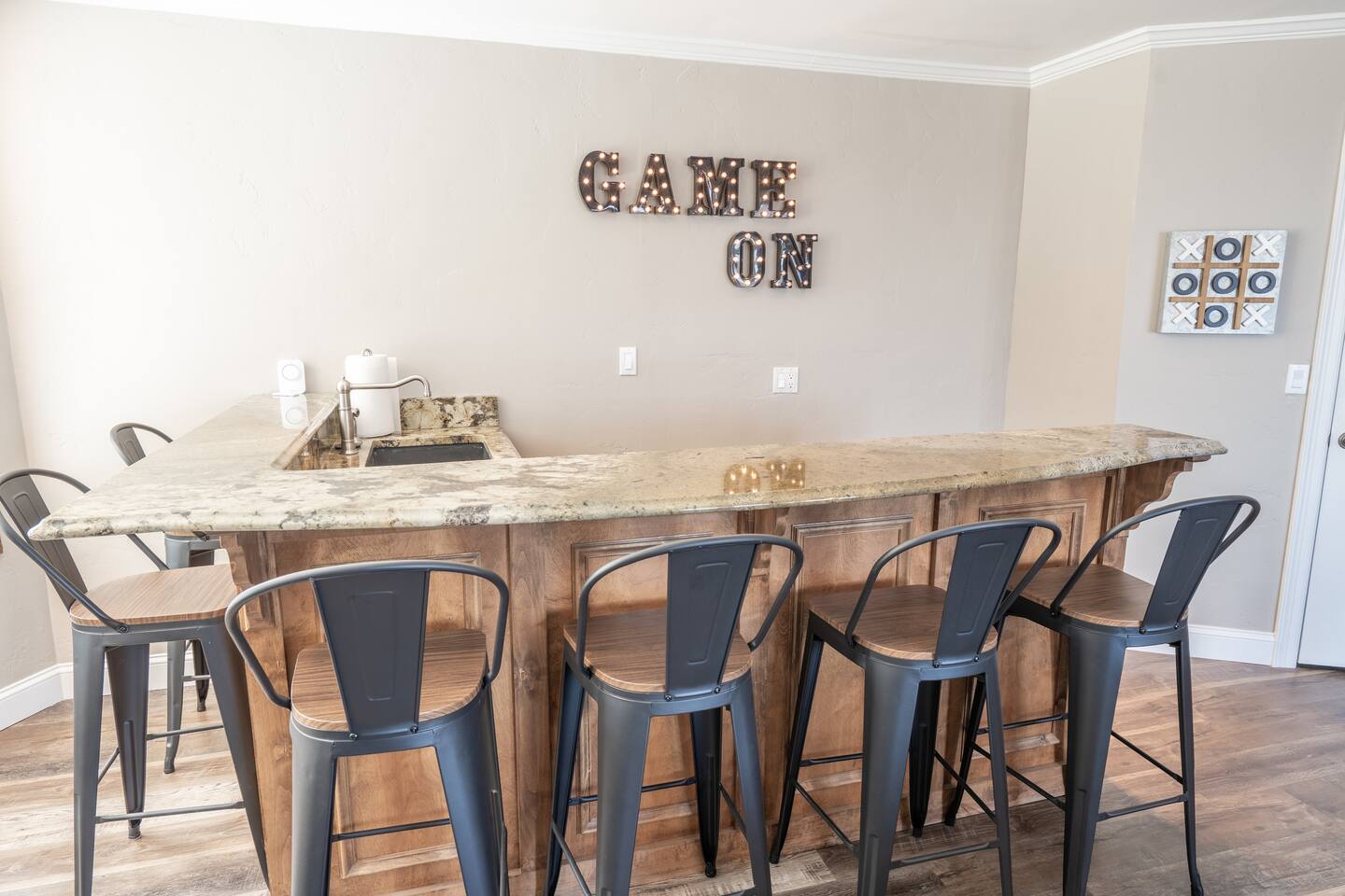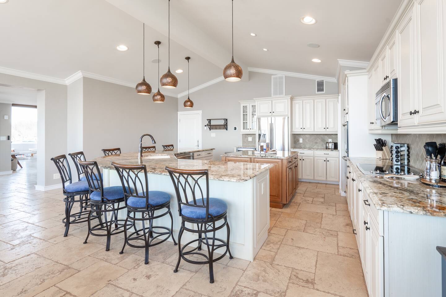 Overall Home Information: - Large home perfect for large families or multiple families - Sleeps 18+ - Over 4300 SqFt with 6 Bedrooms and 4 full bathrooms, fully stocked for large families - Gameroom has wet bar with mini-fridge, arcade games, poker table, large RokuTV for video games and movies - Panoramic lake view with boating and playing in Drowning Creek cove - Private dock with jump platform and ladder - 2 boat slips - All bedrooms, Gameroom, and living room have Roku TVs - Large 2 car garage available - Fully stocked laundry room - Keycode entry - Pet friendly - Up to 2 dogs, Pet fee of $100 at booking Interior Rooms: - Massive kitchen with large bar and dining area with coffee bar - overlooking main lake. Filtered water at kitchen sink - Office has main lake view – IF you must work! - Laundry room with washer and dryer - Living room with main lake view that seats 8 - Large master suite upstairs with lake view has a king and sofa bed, with a large dressing room with two sinks and private bathroom with full amenities. - Downstairs bedroom #1 with queen bed - Downstairs Bunk room has 2 twin/twin bunks - Gameroom with sleeper sofa - Upstairs bedroom #4 has a queen bed with main lake views - Upstairs bedroom #5 has a queen bed and desk. - Large upstairs bedroom #6 has queen bed and desk.